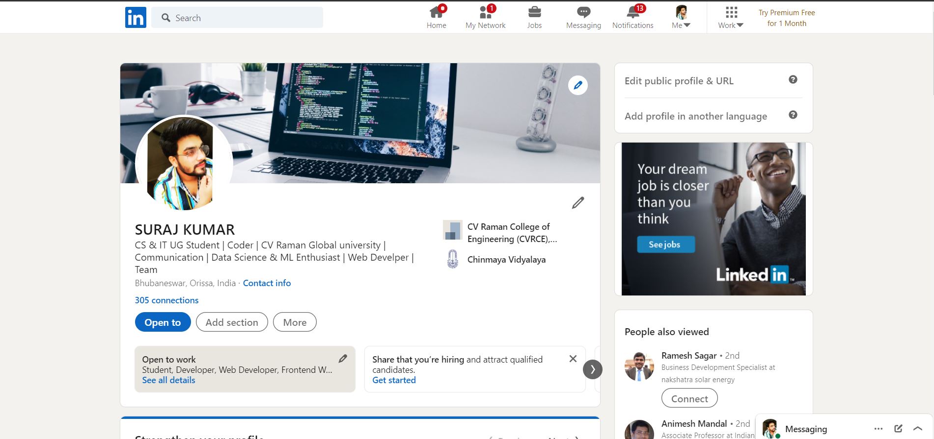 I have my deep interests in Full Stack Development(MERN Stack). AS well as I am Enthusiastic in Data Science & Machine Learning. Currently I am working as an Intern in DIGI Phantom pvt. ltd. in Full Stack Domain.